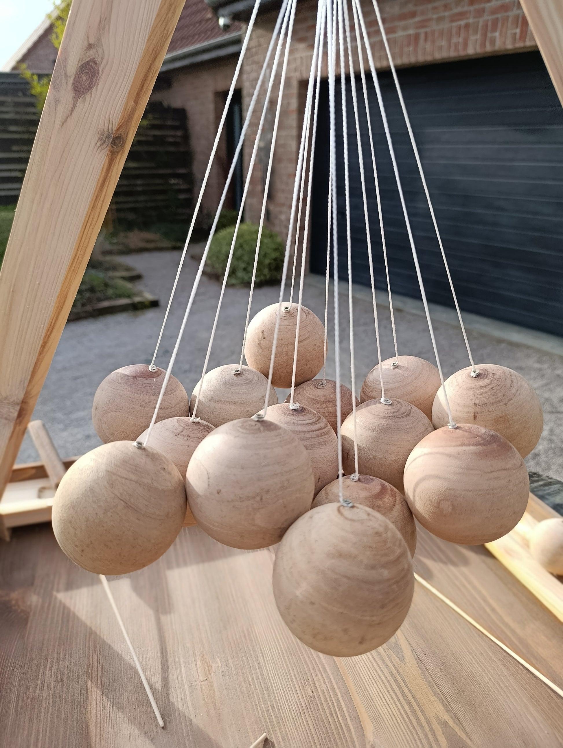 Les 14 boules suspendues sont positionnées au centre du jeu.