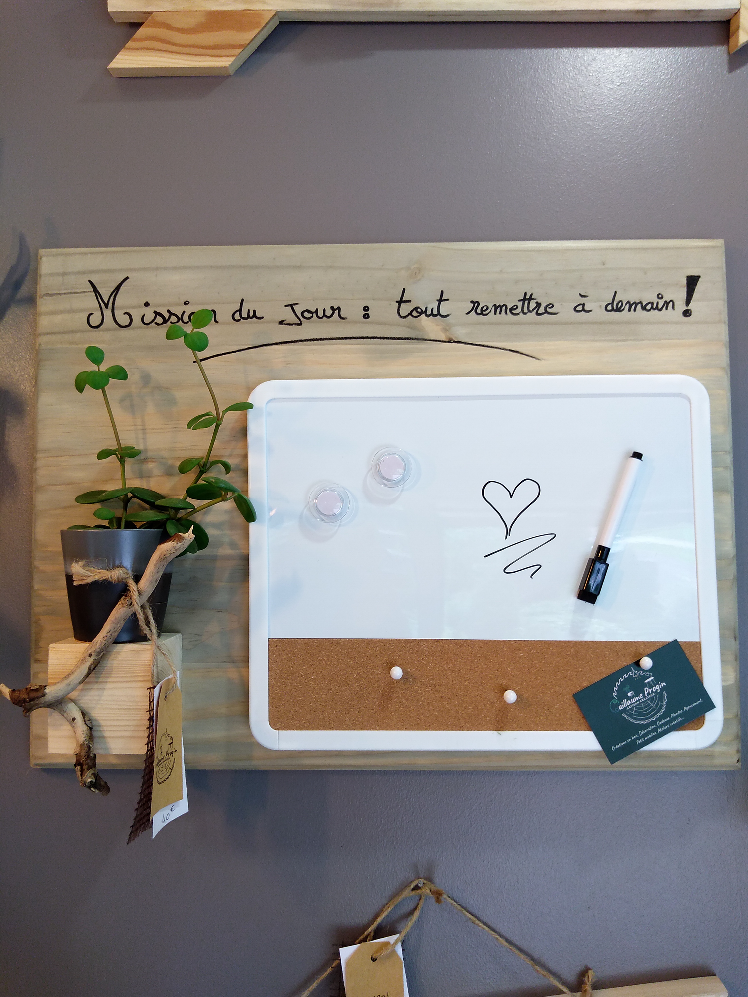 Au programme : découpe, ponçage et fixation de l’étagère à l’ardoise.